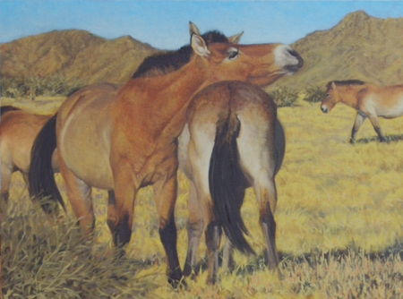 Two of the three paintings I entered in “Spirit of the Horse” to be held at the Palos Verdes Art Center, have been accepted. One is “Takhi Stallion and Mare”, part of which forms the masthead for this blog.