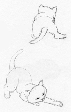 So, she challenged the readers of her blog to get out the charcoal and draw along. I accepted. It took a few more days than I’d hoped, but here’s the best of what I came up with over about an hour this morning. One challenge was drawing kittens that are black and fluffy. A little hard to see the structure. I also found that they would get up and come running to the front of the crate every time they saw me watching them. The trick is to ignore all that and go for the gesture. These took maybe 15 seconds.
