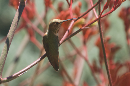Hot hummingbird action the last few days. Two Allen’s hummers competing for control of the plants outside my studio window. I have now found an absolutely reliable way for animal artists, or anyone else for that matter, to procrastinate. Plant hummingbird-friendly plants right outside the window next to your desk. Wait for that “humming” sound, stop work and watch. Perfect.