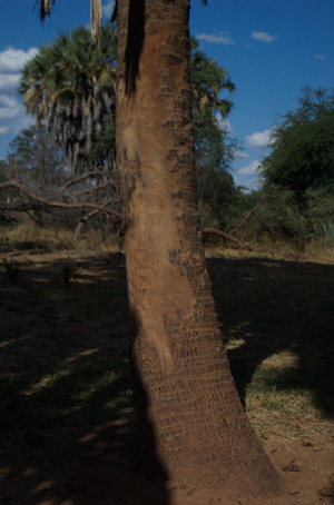 And, nearby, is a doum palm that has been partly rubbed smooth by elephants.