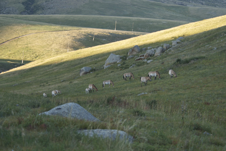We arrived late afternoon, got settled into our ger and had a nice dinner in the dining hall. The other artist who was joining us for the rest of the trip came in and we all met for the first time. She had come over earlier to participate in the eco-volunteer program that Hustai runs. The volunteers are trained and then help with the on-going research of the takhi reintroduction. There are now well over 200 horses.
