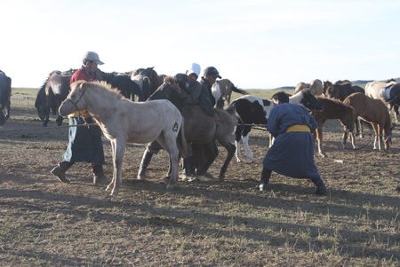 Yesterday morning, we were asked if we would like to go to an annual family event, the branding of the year’s foals. Of course we said yes, but not knowing what to expect. What we got was one of the reasons why travel is so worth the time, money and intermittent hassle- being present at something that was not a set-up for tourists, but getting to share part of a Mongolian country family’s way of life that has continued without interruption for over a thousand years. I was able to record it all and have some of the best photos I have ever taken. Here’s a few highlights: