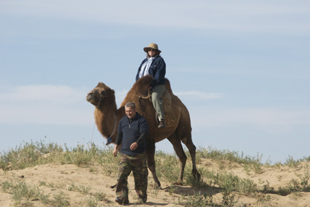 Back at the Bayangol Hotel this afternoon. I’m sorry we didn’t get to western Mongolia, but our time at Arburd Sands was fantastic! The ger camp is owned by a local herder family and is located amongst a 20 km long stretch of sand dunes, which form a sort of northern border to the Gobi. The head of the family, Choidog, is one of the most famous and honored horse trainers in the country. His 40-something son, Batbadrach, won the national Nadaam horse race two years running when he was 8 and 9 years old. They currently have around 300 horses.