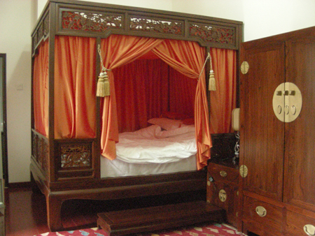 I had thought that I would have an afternoon and evening to poke around Beijing, so had booked into what the English call “character accommodation”- a converted old courtyard house, the Beijing Sihe Hotel, in a hutong neighborhood near the city center. Instead I arrived sweaty and exhausted around 9:30 pm. So I got to be there less than 12 hours, but what a wonderful place! I found them through http://www.tripadvisor.com, my go-to site for hotel/trip recommendations. They rate higher than a lot of the big, luxury hotels and the staff was great! Check this out-