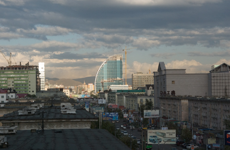 Ulaanbaatar skyline along Peace Ave., with new office building under contruction