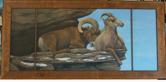 The animals, bighorn sheep, were photographed at the Denver Zoo. It was a warm morning and the ram couldn’t keep his eyes open. His head kept, drooping, drooping, until it sank onto the back of the ewe, who never even blinked. The pose was irresistible, but I did check with Laney, a nationally known artist who specializes in bighorns, to ensure that this behavior could have happened in the wild.