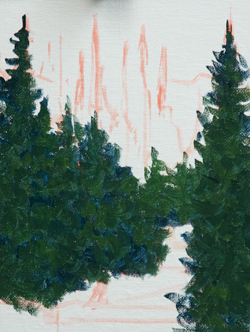 I plan to start offering them a few at a time on EBay, starting next week. Here’s a small preview, starting with one that I photographed in progress, so it’s a short step-by-step demo of how I do these mostly 6″x8″ studies that usually take less than two hours. The idea is to quickly capture a light effect, so detail isn’t relevant. This should look familiar to anyone who has taken Scott Christensen’s Ten Day Plein Air Intensive, because that’s who I learned this approach from and I really like it.