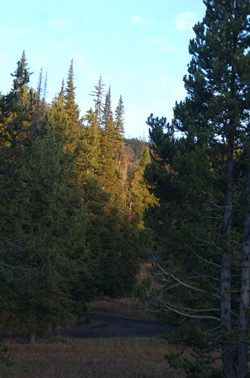 An image I shot up on Dunraven Pass in Yellowstone National Park at first light. What I was working on the was the color temperature shifts from shadow to light.