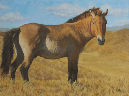 Followers of this blog know how adamant I am about doing fieldwork. I think this next piece illustrates why. There is no way this painting would have happened if I hadn’t been there at Khomiin Tal to photograph both the horses and the habitat. I’ve seen a few other paintings of takhi and so far none of them really looks to me like it was done from reference shot of reintroduced horses in Mongolia. They are pretty obviously captives in Europe or North America. The light’s not right, the land isn’t right and, mostly, the horses themselves aren’t right. But I sure can understand the compelling desire to paint and draw them anyway!