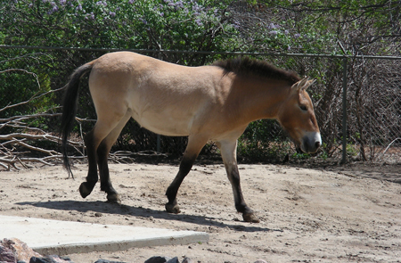 Then, this last May, I was at the Denver Zoo and saw takhi there. They looked much different from the Berlin animals, as you can see. There are a number of reasons for this that have to do with being kept in captive conditions, which can lead to much heavier bone structure and skull defects. The animals for release come from semi-reserves where they can live and eat more normally.