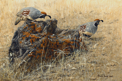 Shawn grew up in Iowa, but now lives about twenty minutes from me in Eureka, California. He started out as an illustrator, creating award-winning work for clients like National Geographic, the Smithsonian and the Audubon Society. For the last ten years, however, he has been creating beautiful paintings like the ones you see here. He’s a Signature Member of the Society of Animal Artists and his work has been accepted into a variety of national juried shows like Birds in Art, Art and the Animal Kingdom and Arts for the Parks.
