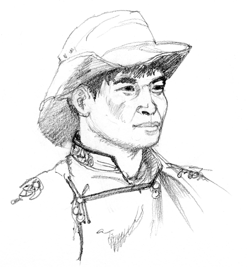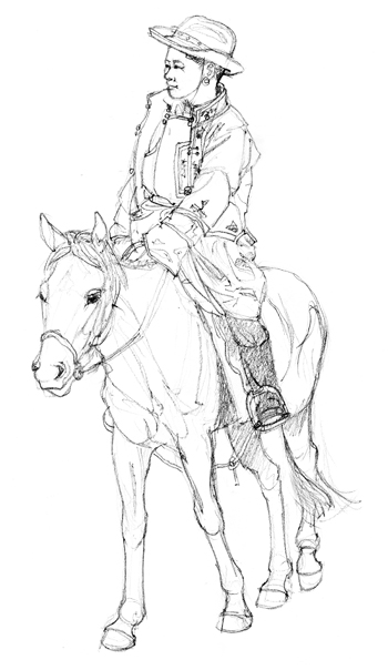I’ve also decided that I want to paint not just the domestic Mongol horses, but the people who ride them. Which brings me back to wrestling with human figures, as described in an earlier post. I get a better result if I can scan the drawings rather than photograph them and also wanted to really hone in on accuracy, so these are smaller and done with a Sanford Draughting pencil, but on the same vellum bristol (which erases very nicely). The heads ended up being only 3/4″ high, which is pretty small, but it reminded me of a story from art school that I thought I might pass along.