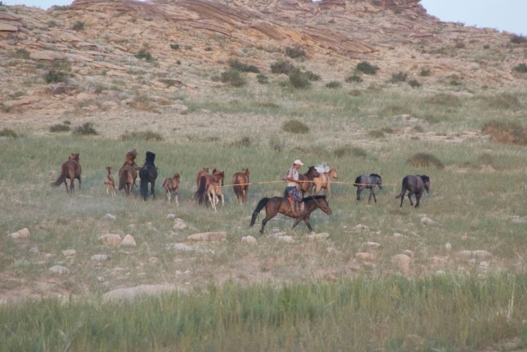 While I’ve done my traveling in Mongolia by vehicle, the following, for me, really evokes what it’s like to journey through the countryside. I’ve included a few images from my trips.