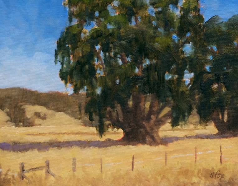 “Back Country Summer, Humboldt County” is a typical late summer scene in southern Humboldt County, California on the road between Petrolia and Honeydew. Although world-renowned for its coast redwoods, the inland areas have rolling hills and prairies with native oaks and often eucalyptus trees planted by early settlers. I wanted to capture a sense of the stillness of hot summer day and the contrast of the rich greens of the trees with the golden grass. Click to bid here