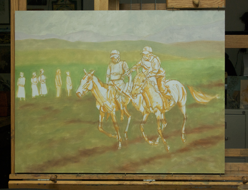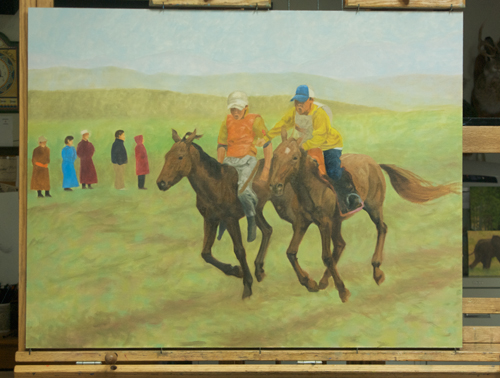 And here is the finished painting: Rainy Day Finish; Erdene Nadaam, 2009