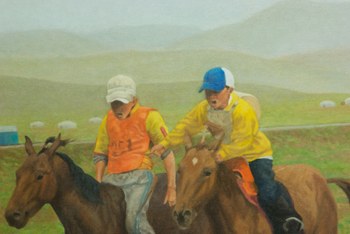 I have also decided to paint these scenes as I see them. I’m not going to “romanticize” them by substituting traditional hats for the baseball caps or putting the kids in del. While I’m very interested in Mongolian history and might do paintings with historical themes, with historic costumes and armor, if I can get the reference, for the most part I’m interested in Mongolia as it really is right now, in the 21st century.