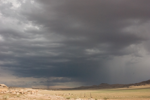 View from my ger, with passing summer rain storm, Baga Gazriin Chuluu Nature Reserve