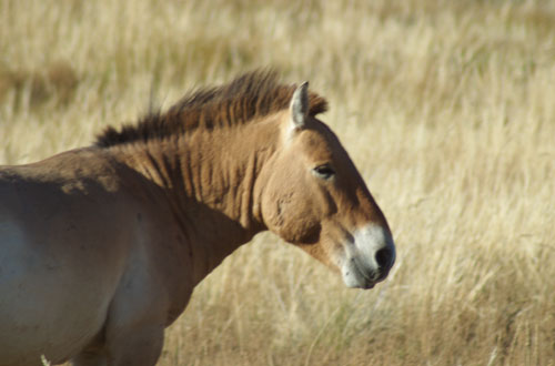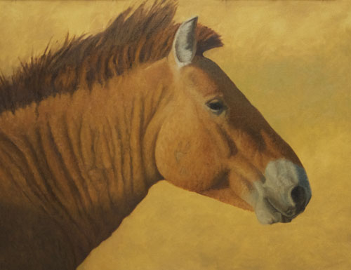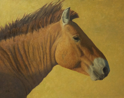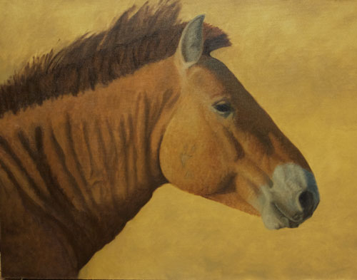 I’m currently working on a large painting that is the most complex one I’ve done yet. I’ll post it when it’s finished. But, in the meantime, I’ve kind of taken a break from it on and off to do something simpler and more straightforward, a head study of a takhi stallion I saw at Hustai National Park in 2006. I had a reference shot that I liked because of the shadow pattern, but as you’ll see there were adjustments that had to be made for it to work as a painting. I hope this step-by-step illustrates how important it is to not, as they told us in art school, get “married to your reference”.