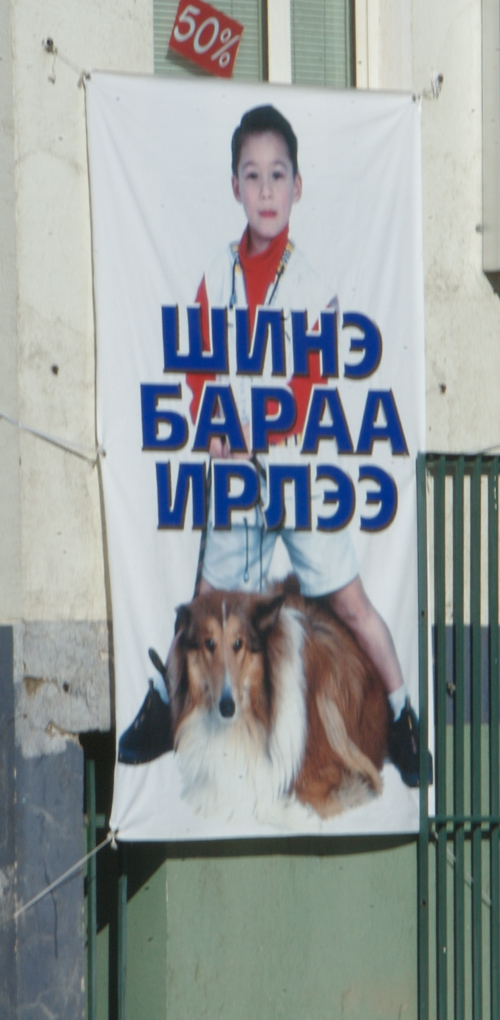 She drilled me in basic pronunciation, got me going with some basic vocabulary and taught me necessary phrases like “hello”, “thank you” and “I’m from California”. Her husband contributed a word to use if someone hassled me- “Yasambay!” (sic), which means “What are you doing?”, the idea being that the person would be so shocked at hearing Mongolian from a non-Mongol that he/she would immediately stop whatever they were doing. As it happens, I’ve had no occasion to say it so far.