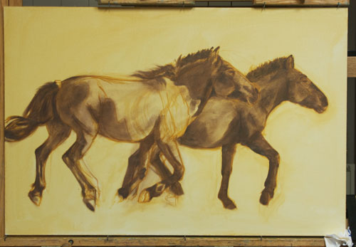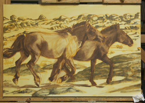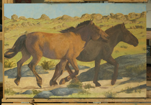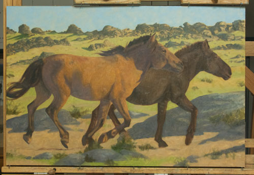 I was at Ikh Nartiin Chuluu Nature Reserve in Sept. of 2008. While sitting outside my ger, a small herd of local horses came wandering by. It was early evening and some of them were feeling frisky, like this stallion. I loved the quality of light on his reddish coat. The background shows some of the fantastic rock formations at Ikh Nart, which provide habitat for argali sheep and Siberian ibex.