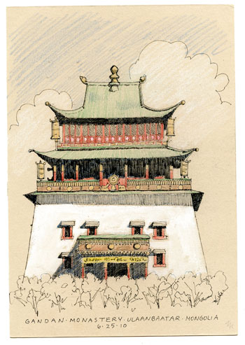 I’ve been easel painting almost exclusively for most of the year and haven’t done much field sketching, so I felt I needed to spend some time getting back up to speed. I got a start late last week and spent the afternoon doing the kind of work I plan to do in Mongolia when I can sit for awhile drawing something that isn’t moving much, like buildings or rocks.