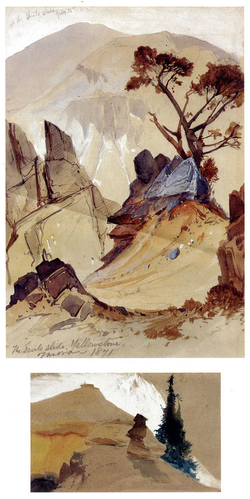 Here’s two examples of my inspiration, courtesy Thomas Moran. The light brown tone is the paper color, which means this method also saves time: