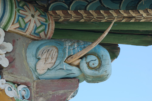 As an artist, the temple was pure eye-candy, being covered with a riot of decorative carvings and paintings on almost every surface. Stylistically it is probably mostly Tibetan, with some Nepalese influence. I’m posting most of the best images I took because when I googled the monastery, I got no hits at all and this place is too special to not share.