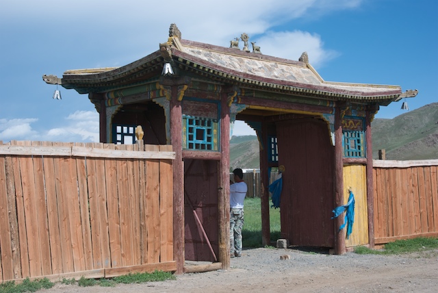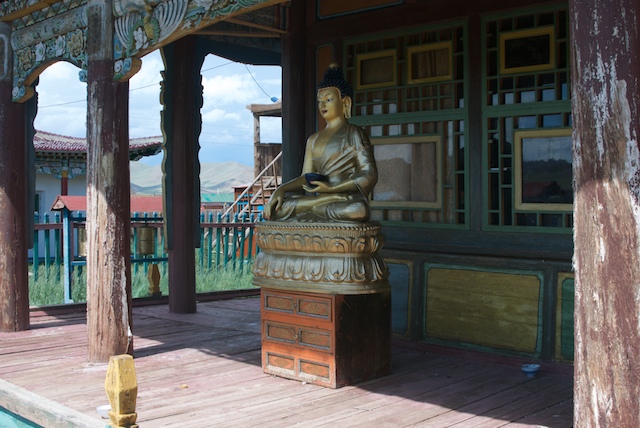 Our destination was the soum center of Erdenetsogt, home to the Gachen Lama Monastery, neither of which I had ever heard of, much less knew anything about. The soum center was typical, except for the lovely setting above the Tuy Gol. The monastery was anything but, as you will see below.