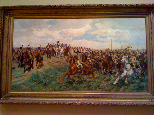This is a detail from a massive painting of one of Napoleon’s greatest victories, with a cast of dozens. This horse is around 5″ from top of head to bottom of hoof. Stunning description of action and anatomy. Here’s the whole thing: