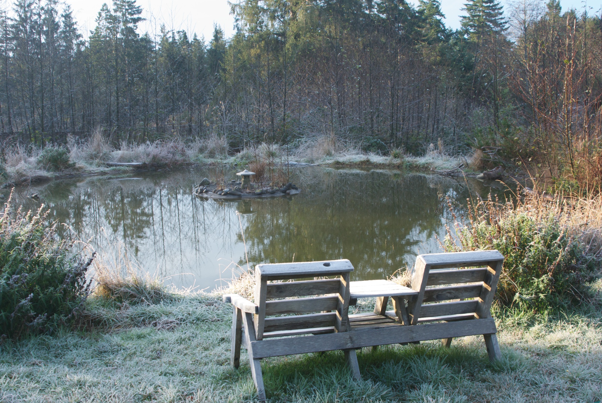 See you next year! Here’s a photo that I took this morning of our pond. It was frosty and 32F.