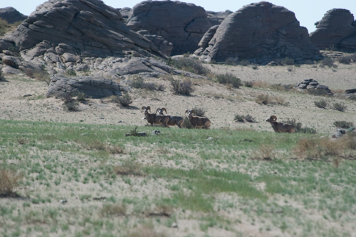 Although a lot of the animals were in poor condition coming out of a typical Mongolian winter in which temperatures can plunge to -40F, I saw many groups that included rams, ewes and lambs, gathered some useable data and got some pretty good photographs. It was a perfect two-fer. I was able to contribute to scientific knowledge of a species and at the same time get information that would be invaluable for painting them.