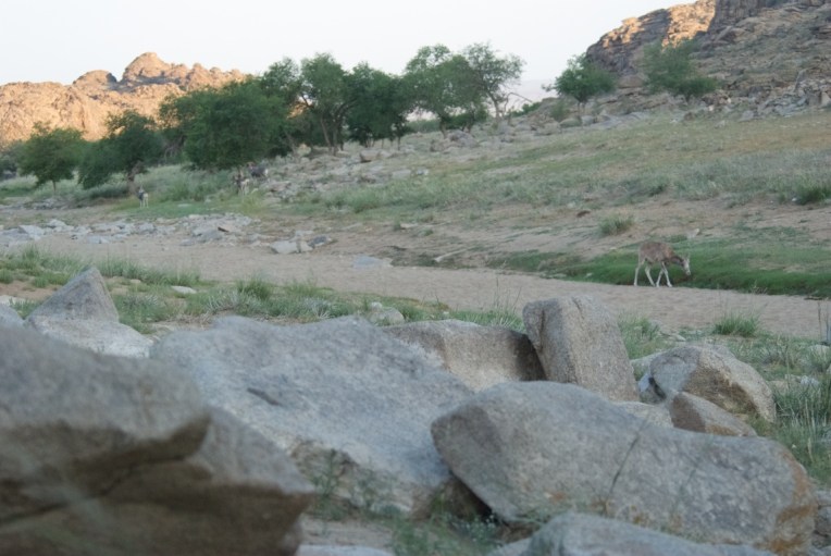But now I could hear movement in the camp. The group split up, two of the rams going up into the rocks.