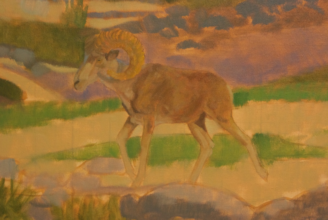 Not this time. First, I thought about what it was that made me want to paint this scene. It was not only the argali, but the interesting alternating pattern of light and shadow, which started in the foreground and went all the way back. And it was important that it be about my emotional response to this very special experience.
