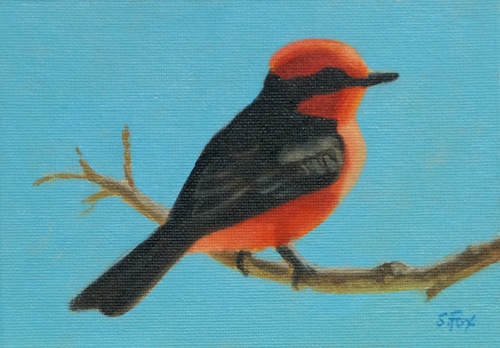 Between now and the 11th I’ll be posting a painting every day so that you can see what I’ll have available. They will be small works and very affordable. Here’s today’s featured painting, a vermillion flycatcher which I saw near Tucson, Arizona during my March trip to the Sea of Cortez: