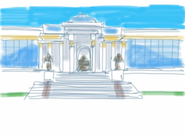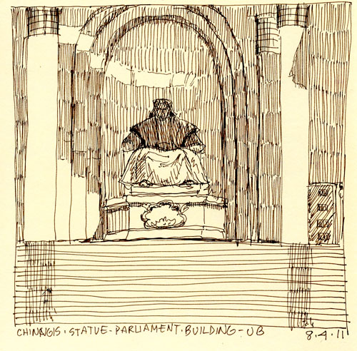 Before we left on our “wildlife tour”, Pokey and I had time to wander around UB. I took her to the Museum of the Chojin Lama. Since I had been in the temples before, I got out my iPad and did a little sketching of a few of the statues flanking the entry stairs of the main temple.