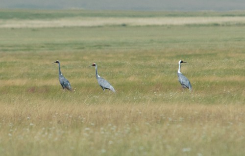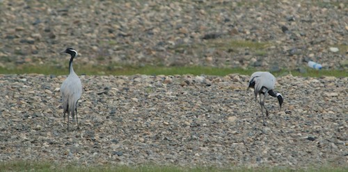 That evening Khatnaa told us that the next day’s drive wouldn’t be a long one, so we would go out into the reserve in the morning and leave after lunch. We went around the “backside” of the mountain, the side away from the river, parked in a draw, got out and almost immediately spotted four big rams running over a ridge to our right. I only was able to get a couple of butt shots before they were gone. But, within minutes, we spotted an argali ewe and lamb to our left. And then a large group moving up the draw directly in front of us, but a pretty long ways off. It’s estimated that there are less than 100 argali in Gun-Galuut, so we saw a fairly good percentage of the population in two tries.