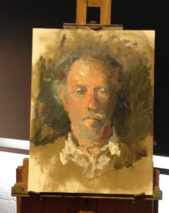 After the lunch break, we all spent the afternoon cycling between three excellent painting demos, offered by Nancy Seamons Crookston (a portrait in oil), David Gallup (three quick studies in oil) and one of my classmates from my art school days, Kim Lordier (landscape in pastel).