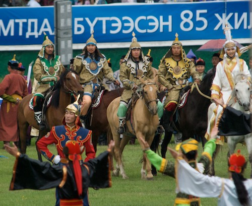 Mongol warriors escorting Chinggis Khan's mother, Hoelun: National Naadam opening ceremonies, Ulaanbaatar, July 2009