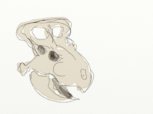 Finally, here are a couple of quick sketches I did of protoceratops skulls using ArtRage on my iPad.