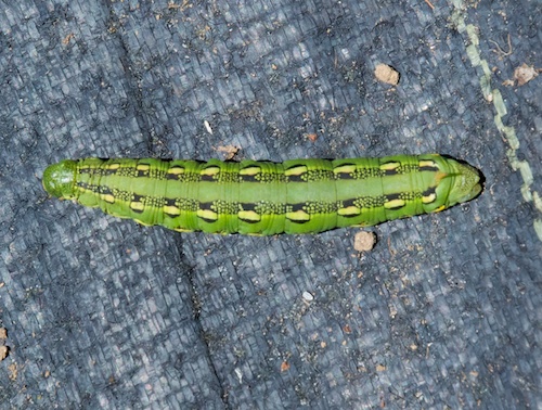 Unidentified caterpillar. Might turn into a sphinx moth, but don’t know for sure.