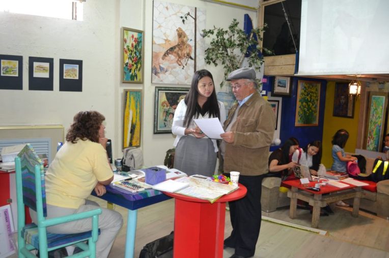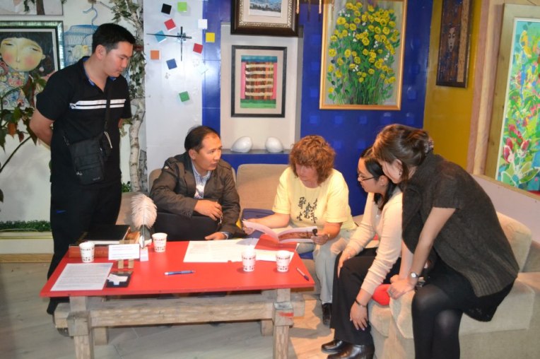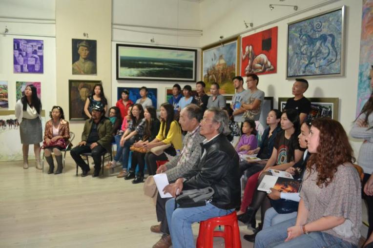 My final days in Ulaanbaatar were a bit of a whirlwind. The art event at ArtiCour Gallery was great! There was a steady stream of people all day, some of whom I knew. There was a lot of interest in the WildArt Mongolia Expedition and at least three artists expressed an interest in going next year. Many art students came by. The director of a Mongolian magazine which publishes articles on artists stopped in and said that they want to do an article on my and my work! Even more special to me personally, a number of very prominent Mongol artists attended, all of them members of the venerable Union of Mongolian Artists, which was founded in 1944. Two of them invited me to visit their studios. But that will be a tale for another post.