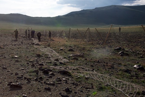 The second morning the spotters went out and came up empty. I went back in the afternoon with Barry and the Ikh Nart crew and joined in helping to set up the nets.