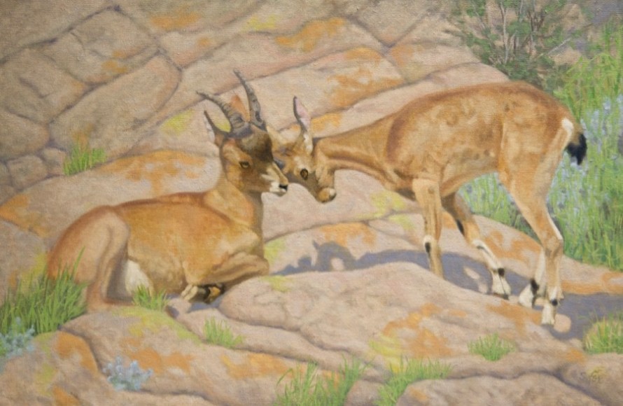 New work! “Want to Play?” oil on canvasboard 12×16″ (price on request)- Siberian ibex I saw at Ikh Nartiin Chuluu Nature Reserve, Mongolia