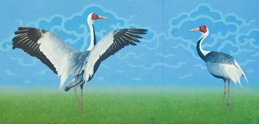An Elegant Pair (White-napped Cranes)- (diptych) 900