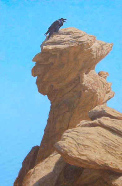Raven-on-Big-Head-Rock,-Ikh-Nart