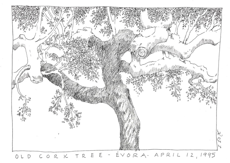 On a trip to Portugal with a number of other artists we stayed at an old farmhouse that was surrounded by cork trees, the same ones that wine corks come from. They were full of character. I was interested in the twisting branches and trunk.