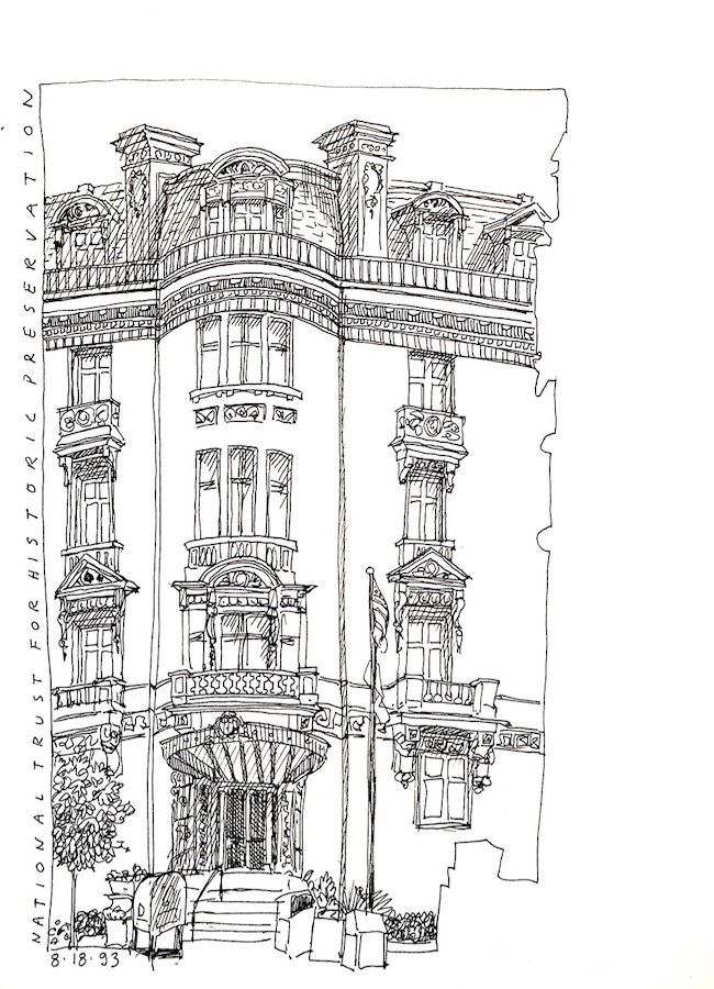 I also sketch during trips around the USA. I enjoy playing around with edges, cropping in as needed. I didn’t want to bother with the building next to my subject, so I just left it as a silhouette in reverse.