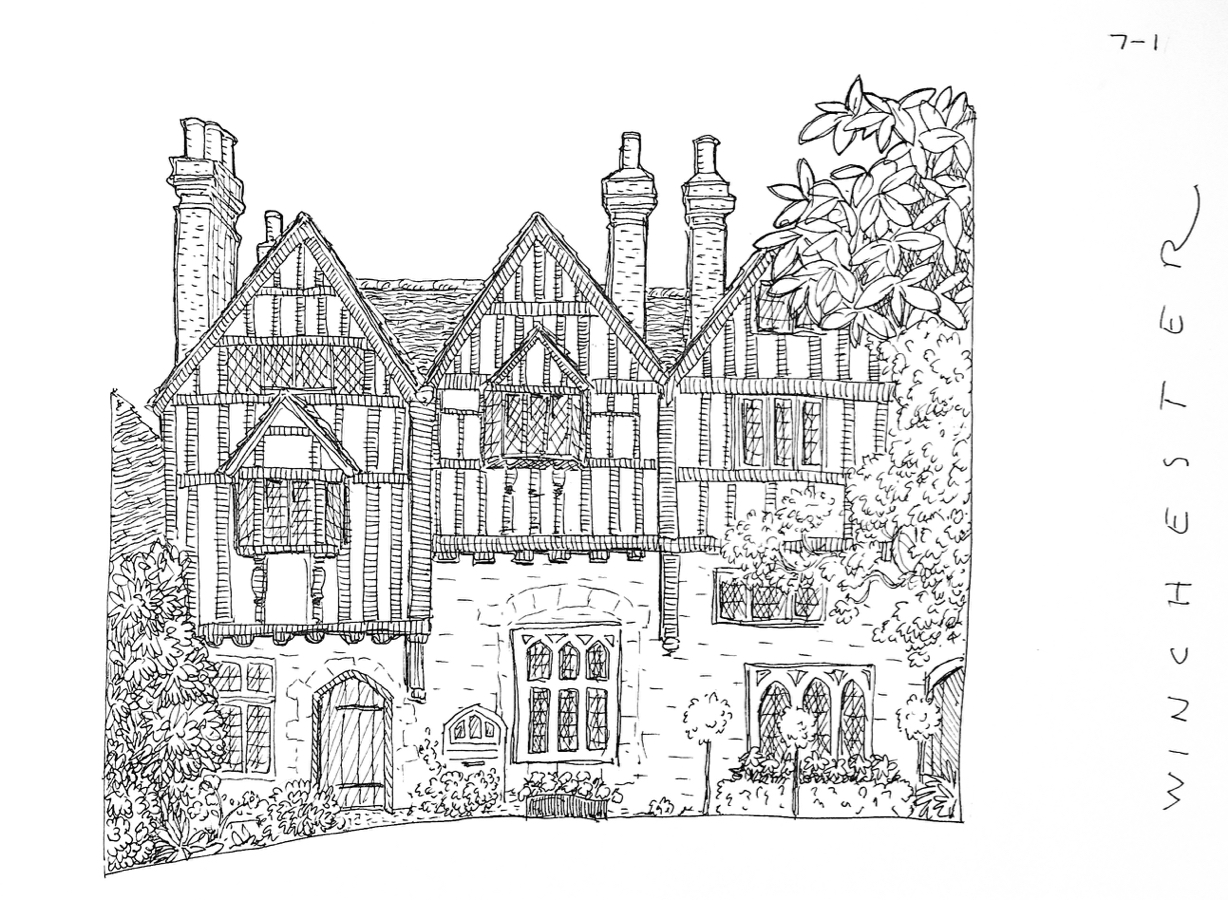 I’ve had the good fortune to travel to England quite a bit over the years. I love drawing the wonderfully picturesque historic buildings.