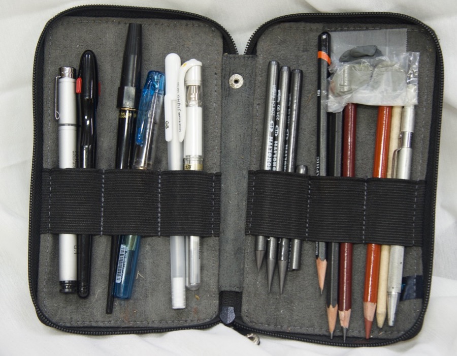 Most of you know me as an oil painter, but I’ve always loved to sketchand draw with pencils and pens and I also paint in watercolor on location. Dating back to 1989, I take at least a small sketchbook and kit like the one above with me when I travel.