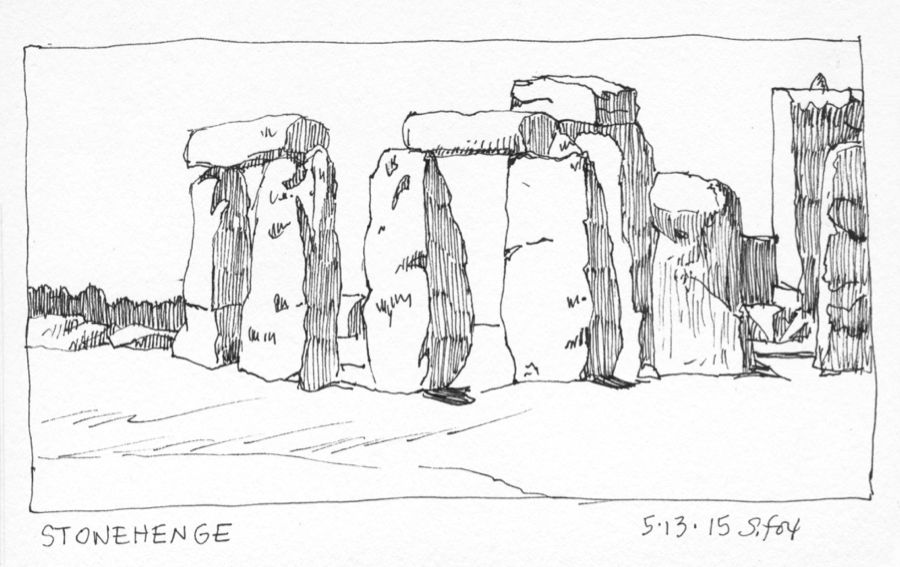 Getting to sketch at Stonehenge a few years ago was a tremendous treat. In order to do a number of drawings from different angles I kept it really simple….the shapes of the stone themselves and then filling in the shadow sides.